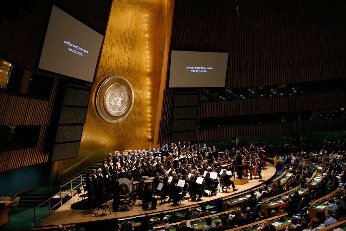 Seinen Geschichtsträchtigsten Auftritt hatte der Zamirchor im Januar 2010 im Rahmen der Feierlichkeiten der Vereinten Nationen zum Internationalen Holocaust-Gedenktag gemeinsam mit den Nürnberger Philharmonikern und dem Jerusalem Oratorio Chamber Choir aus Israel. „Eine unserer DVDs schaffte es bis zur UN in New York, die uns daraufhin als Programm haben wollte”, erzählt Baier. Doch das ging nur, wenn eine Botschaft, in diesem Fall die Deutsche, sie offiziell einlud. Die aber sei beim Thema Holocaust-Gedenken äußerst zurückhaltend gewesen: „Unser Engagement könnte völlig falsch gedeutet werden”, hieß es. Als sie mit ihrem bereits erprobten Verständnis für Vorurteile und Ängstlichkeiten bei der Botschaft nicht mehr weiterkam, fiel ihr die Handynummer von Karl Theodor zu Guttenberg ein, von dem Baier einmal einen Anruf erhalten hatte. Zufällig war sie noch im Handy gespeichert. Er reagierte auf diesen kessen Anruf am Sonntagmittag hilfsbereit und prompt mit der Beseitigung der diplomatischen Hindernisse. Nun musste der Chor „nur noch” einen sechsstelligen Betrag an Sponsorengeldern eintreiben, um den historischen Auftritt in der UN-Assembly Hall zu realisieren. Und auch das klappte. Unter den Institutionen und Persönlichkeiten, die den Chor wiederholt stark unterstützten waren die Stadt Bayreuth mit Bürgermeister Dr. Michael Hohl, Hartmut Koschyk, parlamentarischer Staatssekretär beim Bundesminister für Finanzen, das Goetheinstitut, die Staatskanzlei, der Bayerischer Musikrat, die Oberfrankenstiftung, der Bayerische Kulturfond, die Sparkasse Bayreuth und viele andere.